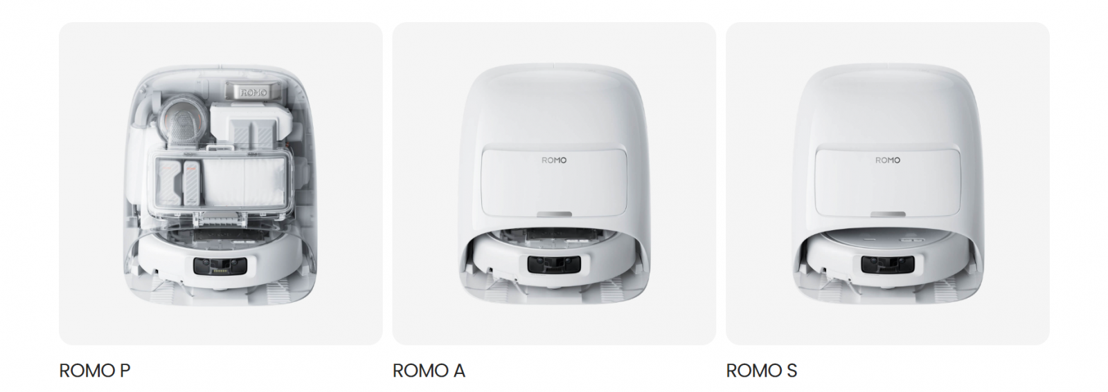À retenir : ROMO P vise l’expérience la plus premium et l’hygiène renforcée. ROMO A conserve le style transparent avec une base plus discrète. ROMO S va à l’essentiel avec un design blanc sobre.