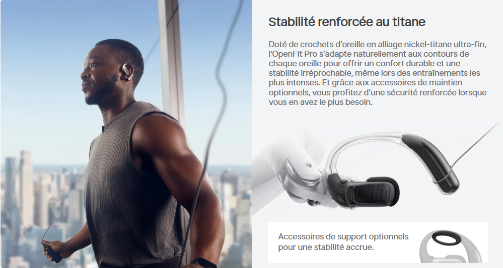 Résultat : les OpenFit Pro offrent l’un des meilleurs rendus audio du marché open-ear, aussi bien pour la musique que pour les podcasts ou les appels.